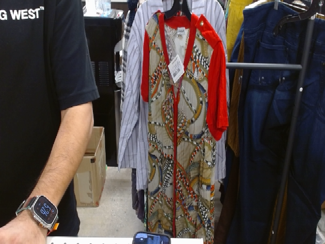 Elevate your wardrobe with this stylish duster dress. This dress features a unique chain pattern, perfect for adding a touch of elegance to any outfit. The red sleeves add a pop of color, making it a versatile piece for various occasions. Add this dress to your collection today!