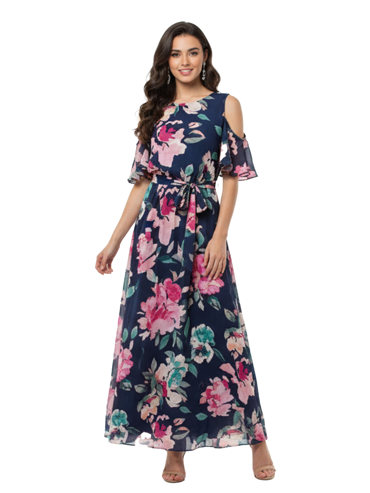 Lauren Ralph Lauren Floral Navy Cold Shoulder Maxi Dress