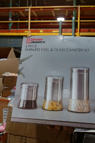 Home Basics 4 Piece Stainless Steel & Glass Canister Set