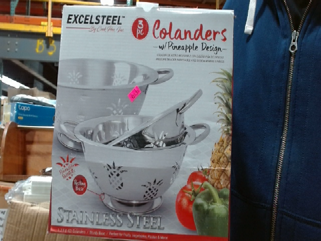 ExcelSteel 3-Piece Colander Set with Pineapple Design