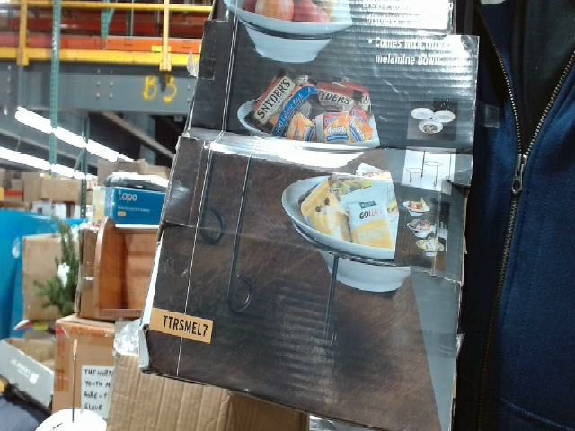 Add a touch of elegance to your next gathering with this two-tier server. The server features two white melamine bowls of unspecified size for serving appetizers, desserts, or snacks. Its versatile design complements any decor, making it perfect for both casual and formal occasions. Made of high quality material and designed to impress.