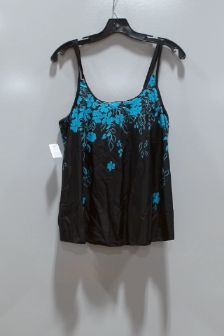 Dive into summer with this stylish women's swimsuit top! Featuring a beautiful floral print, this top is perfect for lounging by the pool or swimming in the ocean. The top is black with a blue floral pattern. This swimsuit top is designed for both comfort and style.