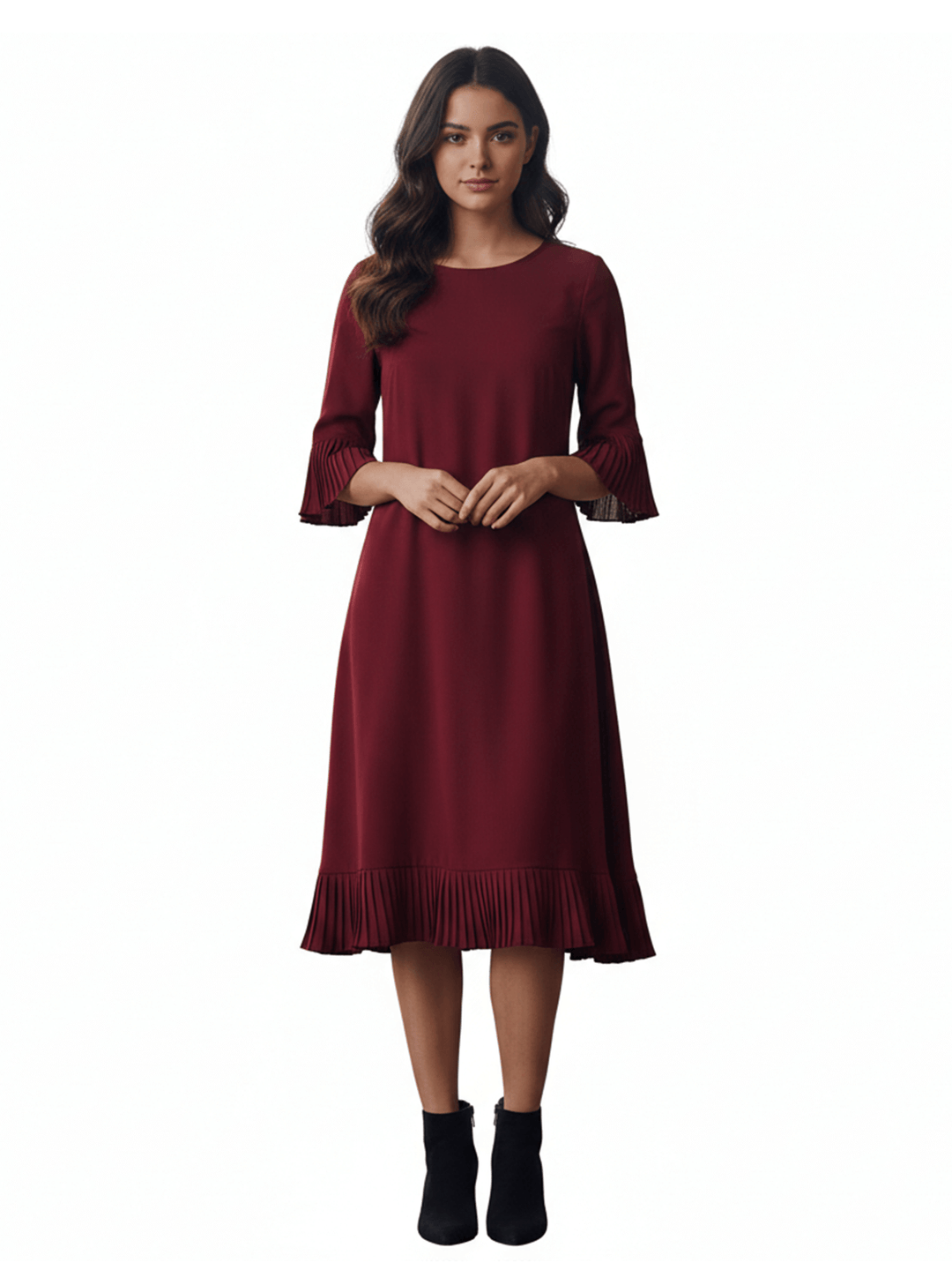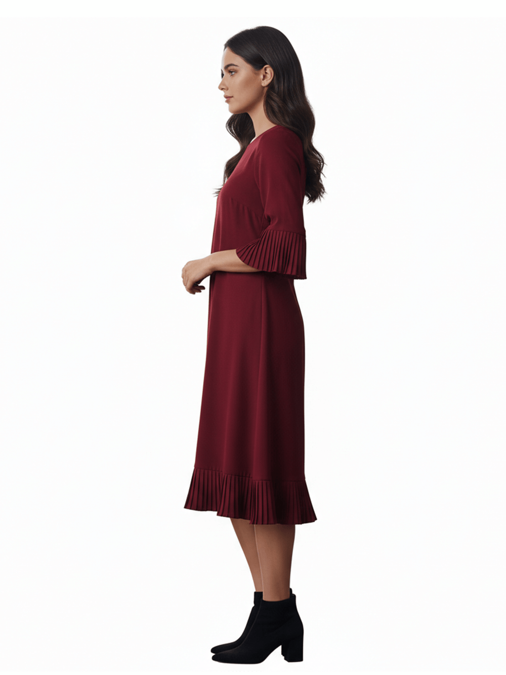 Burgundy Jersey Long Sleeve Dress